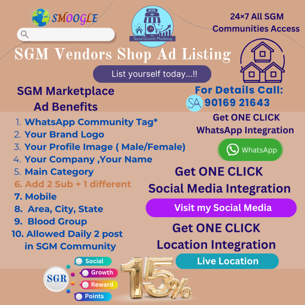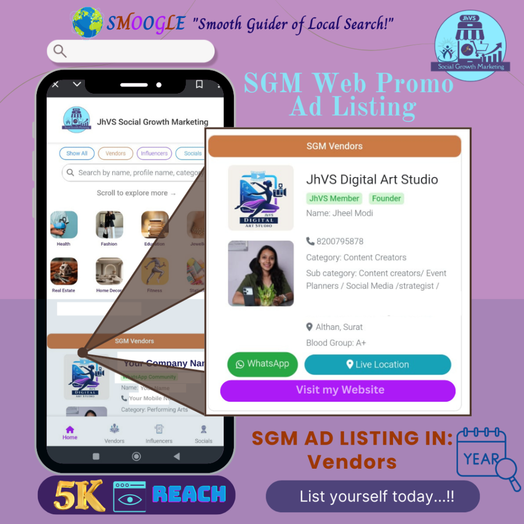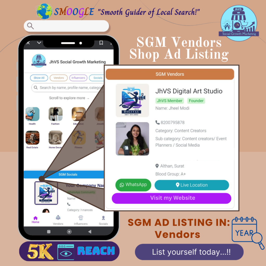 SGM Vendors Shop Ad Listing | Get Listed on JhVS Social Growth Marketing Portal