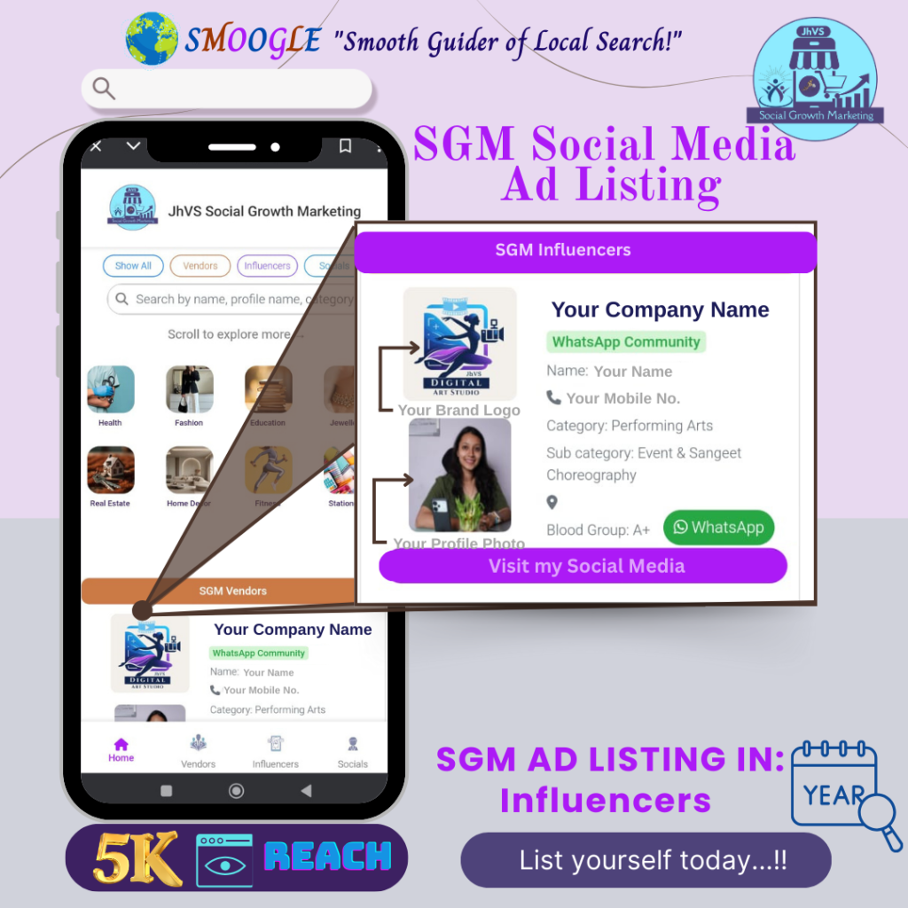 SGM Influencer Ad Listing | Get Listed on JhVS Social Growth Marketing Portal